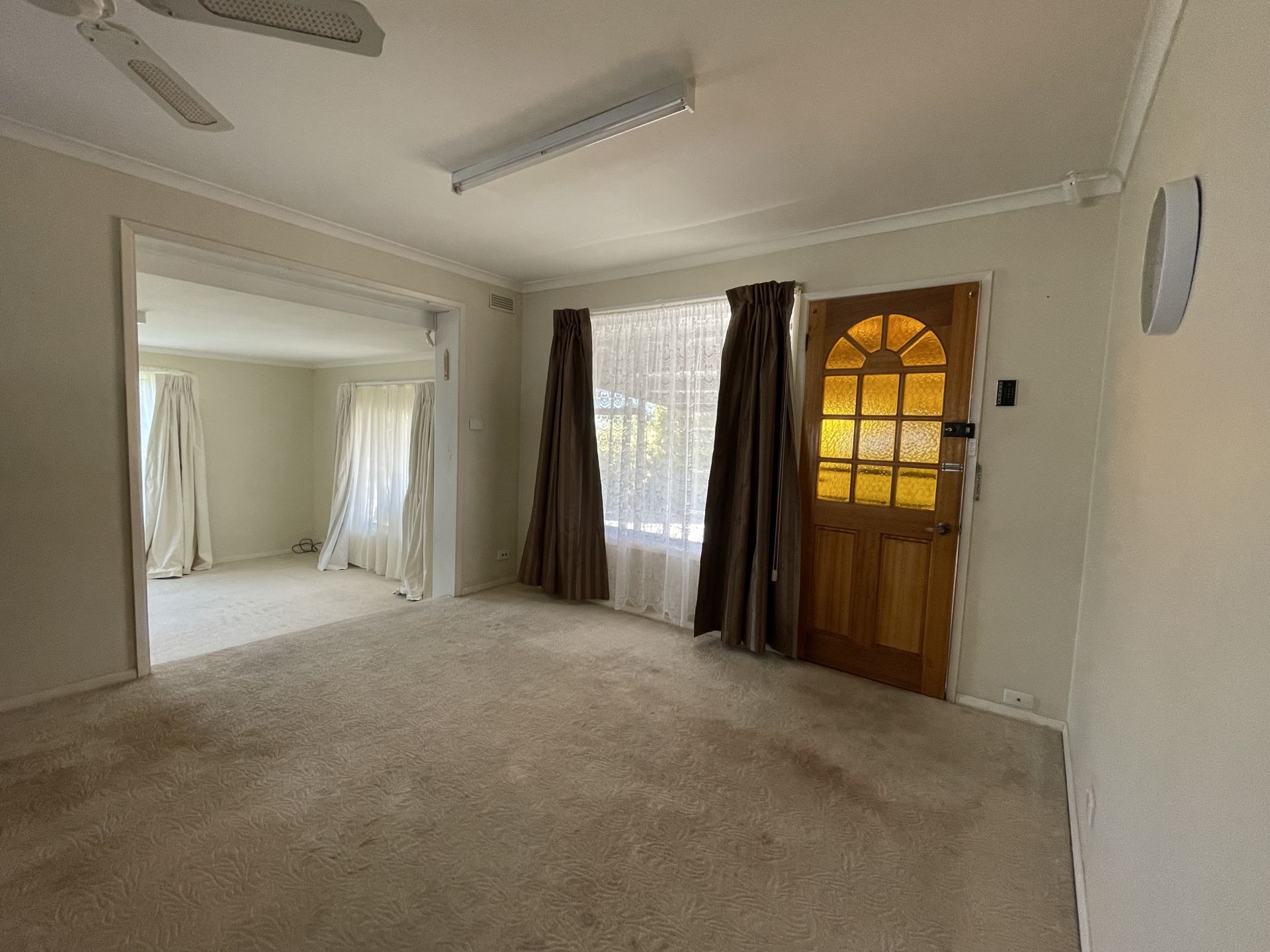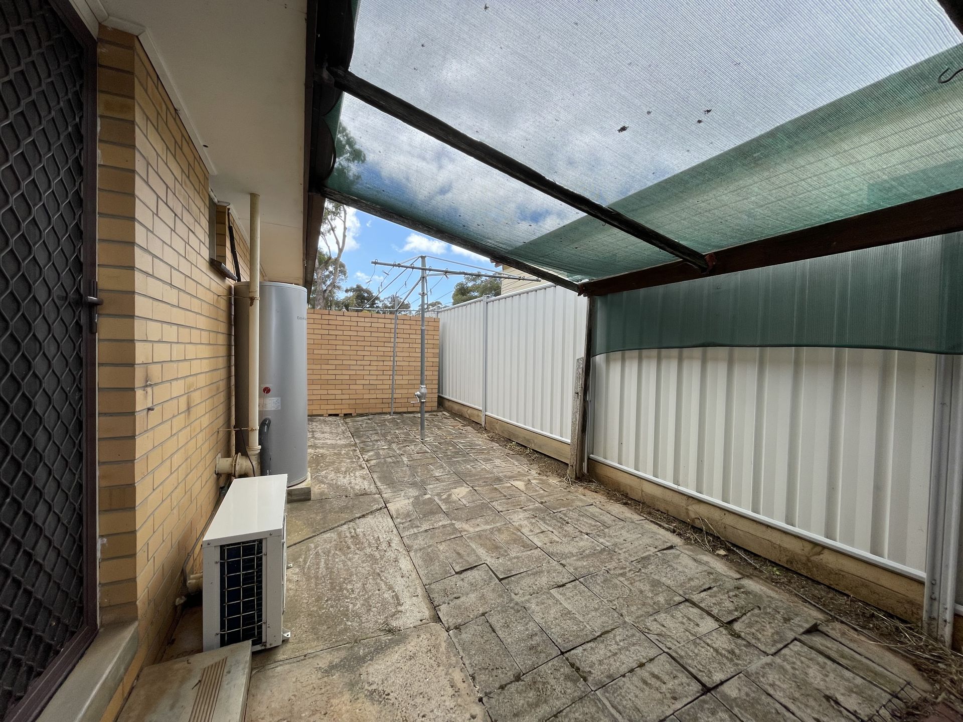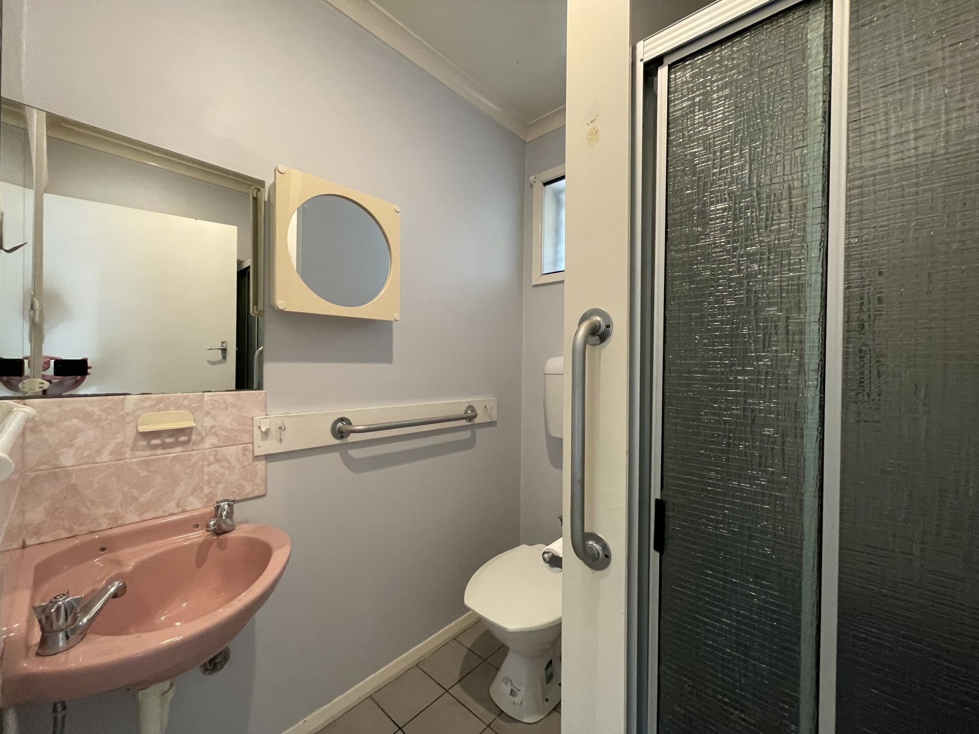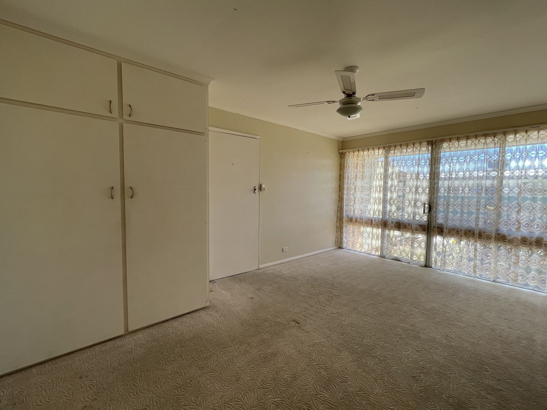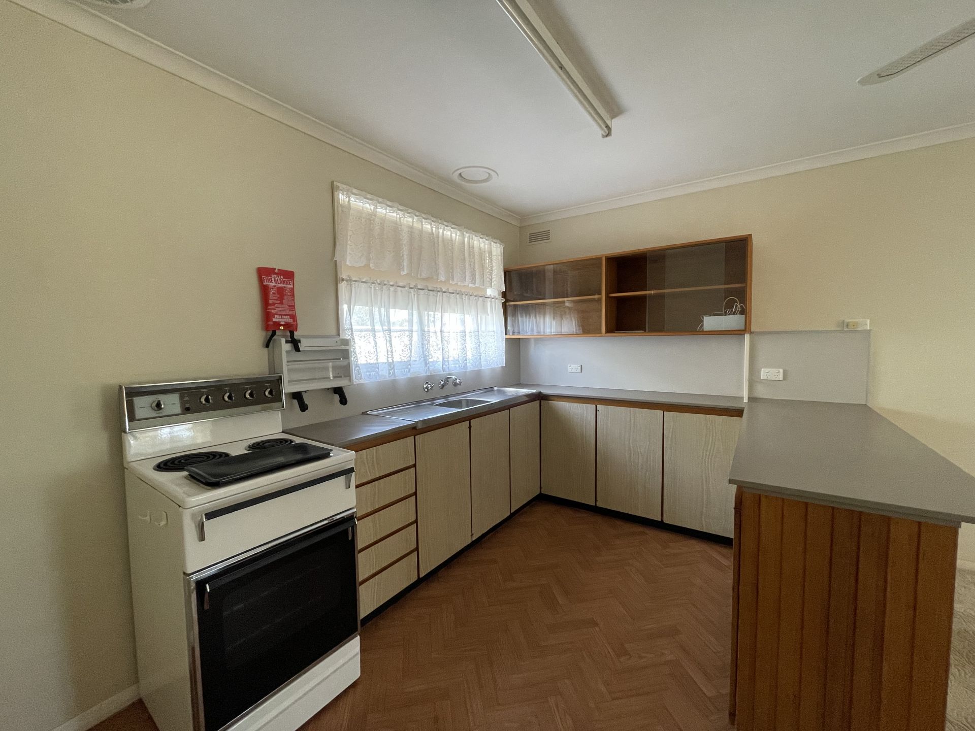 This functional unit features ceiling fans and a split system throughout, electric cooking and combined kitchen and dining.