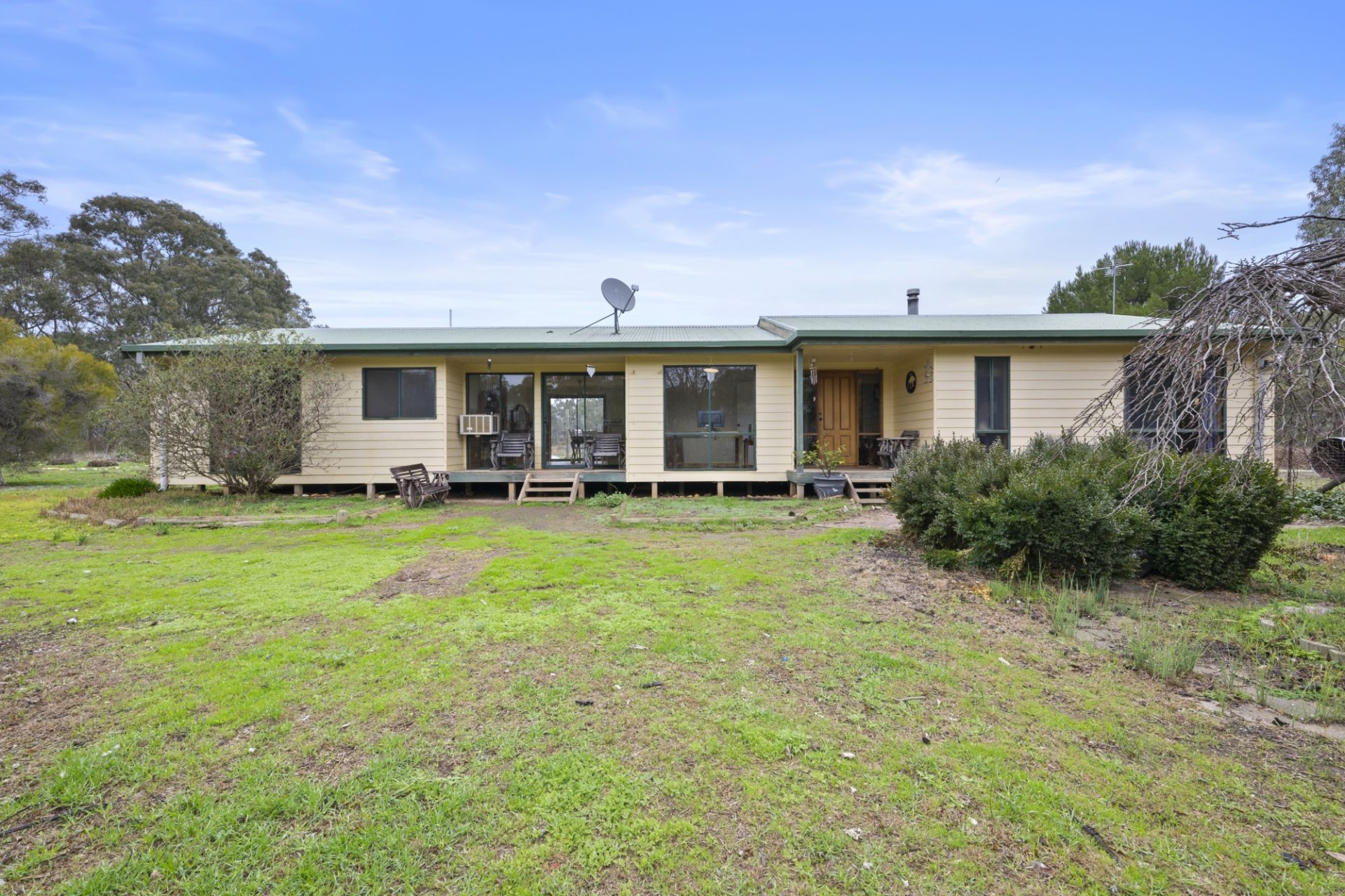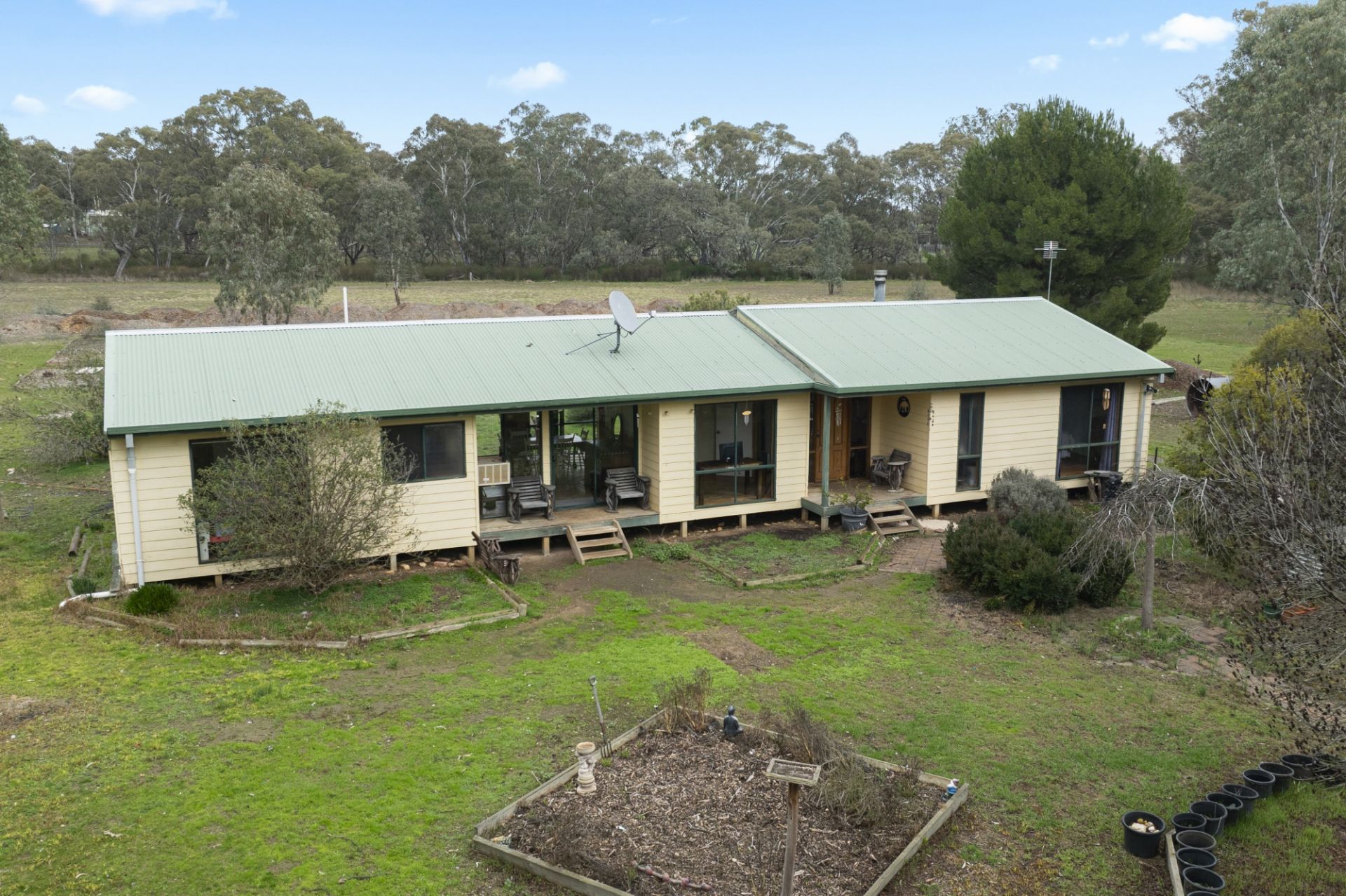 Outdoors, the property shines with infrastructure ideal for animal lovers or small-scale farming. Formerly an organic poultry farm, the setup includes approximately 17 aviaries and shelters, suitable for chickens, goats, sheep, pigs, or horses. With two street frontages, a small dam, seasonal creek at the rear, and a mostly cleared landscape dotted with established trees, the opportunities are vast.
