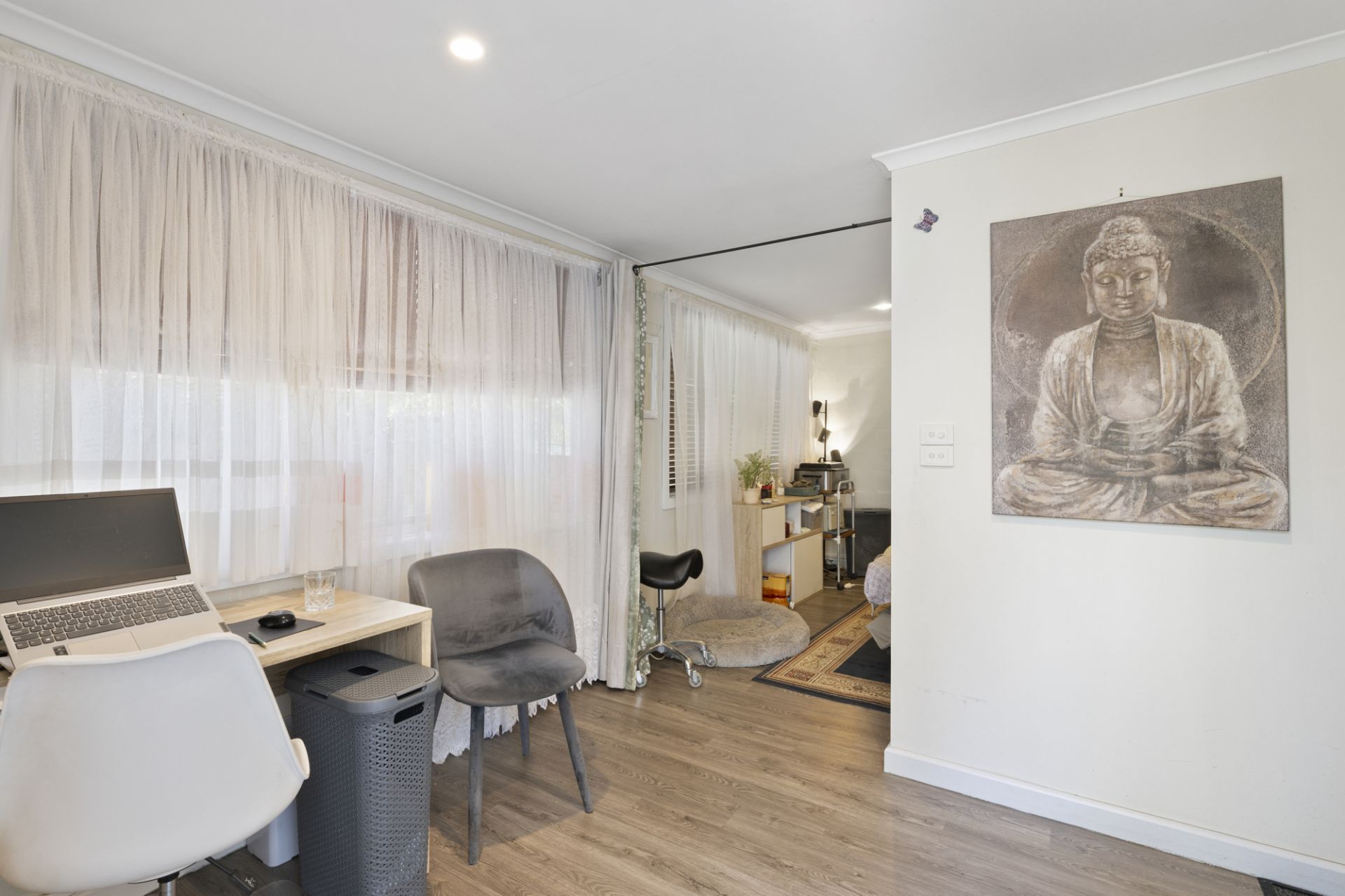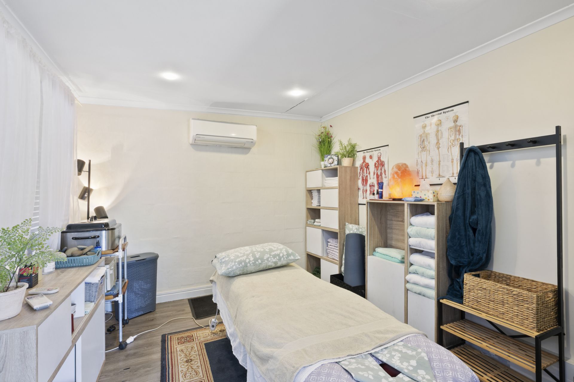 Inside, the home offers two generous bedrooms plus a versatile third bedroom, currently used as a massage room, with a home office space adjoining.