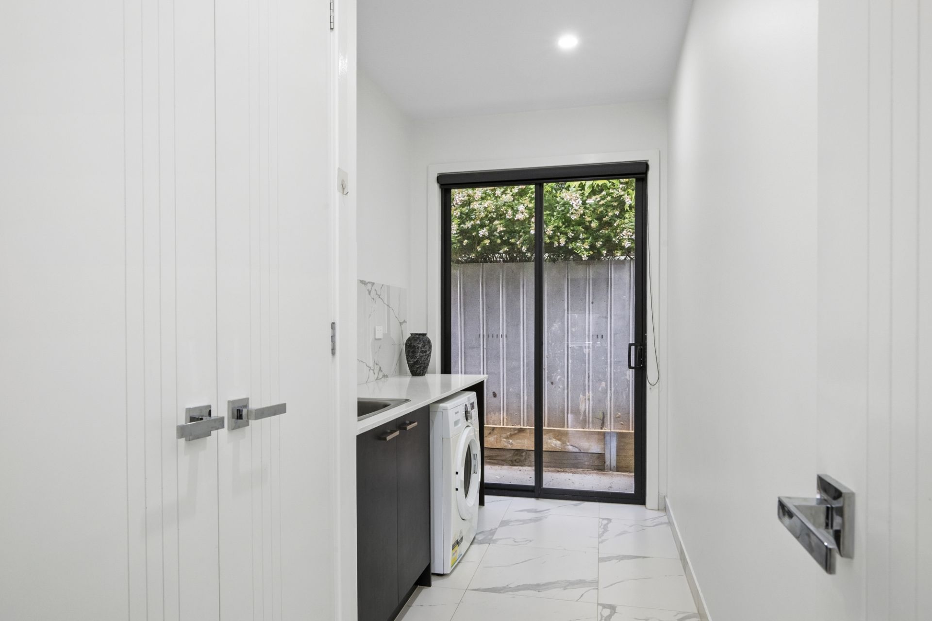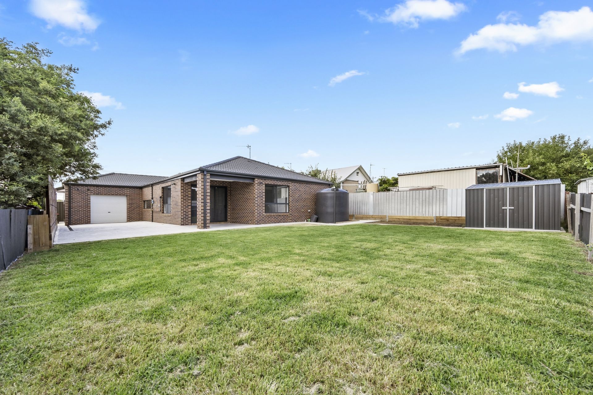Undercover alfresco and generous back garden with concreted and grassed areas for the children to enjoy, a garden shed and 10,000 ltr water tank. The double remote lock-up garage offers the convenience of a further rear roller door to allow access into the back garden.