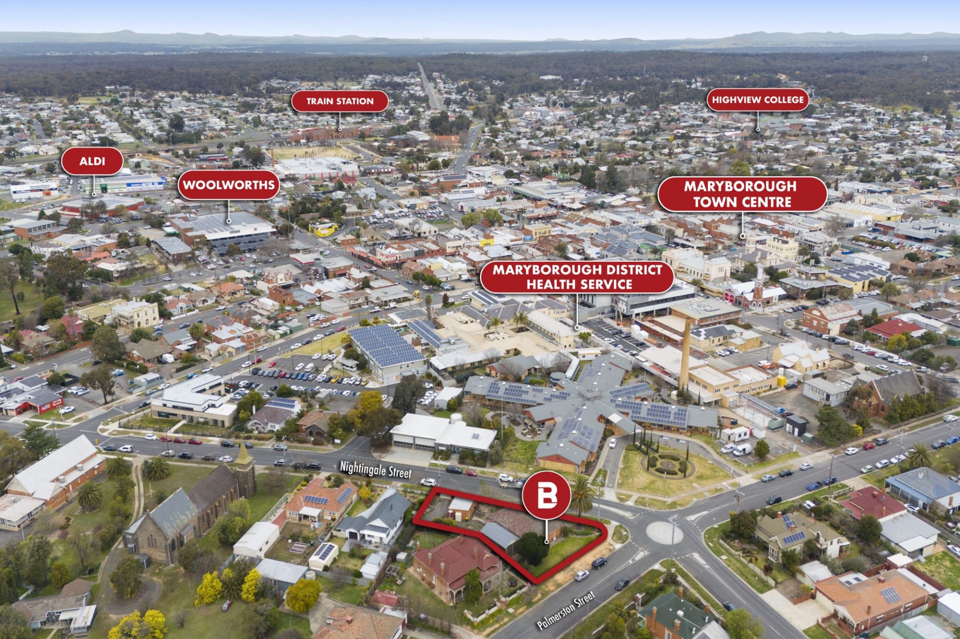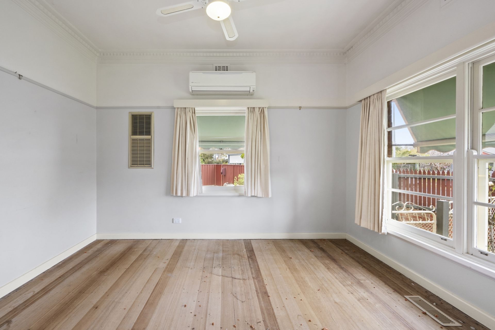 Located within a minute's walk to the Maryborough Hospital, this striking 1940s redbrick home, adorned with charming Art Deco features, presents a fantastic opportunity for the savvy buyer. Boasting high ceilings, this property offers three bedrooms with ample storage, large windows, and abundant natural light. The generously sized lounge room features a cozy gas log fire fireplace; home also has two reverse cycle split systems and ducted heating in the floor in need of upgraded system. The space connects to the formal dining room, adjacent to the well-appointed kitchen, which is equipped with electric appliances and a dishwasher.