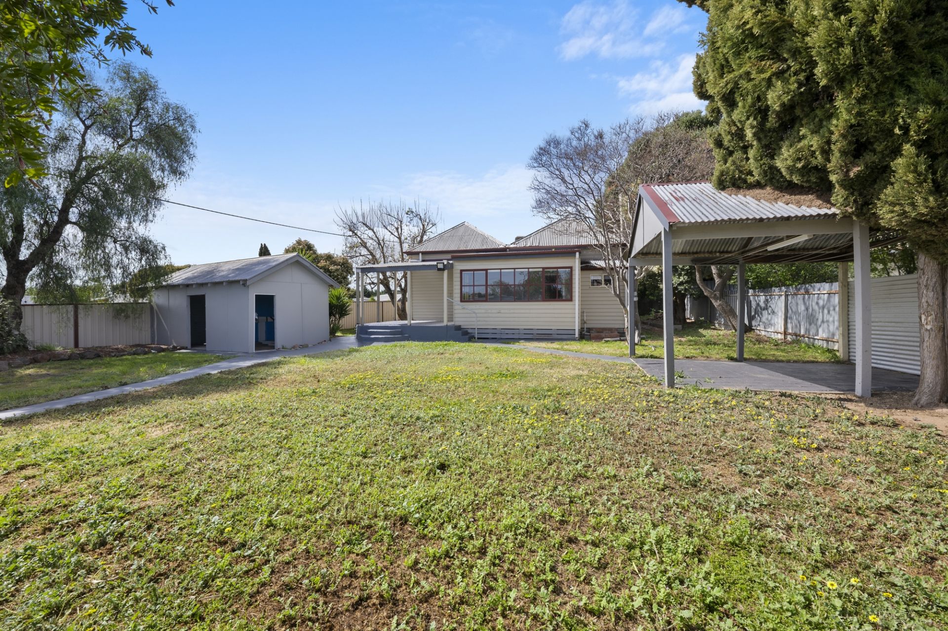 A modern family bathroom includes a shower over bath, vanity, IXL, and toilet. From the dining area, enjoy seamless access to the enclosed sunroom/second living zone, and further to an outdoor entertaining area. Additional features include ducted gas central heating, evaporative cooling, a powered single garage with remote access, single carport, and a brick storage shed with a second toilet and sink. The property also benefits from convenient side gate access via Higham Street, with plenty of room in the large back yard to park the caravan or add extra shedding.