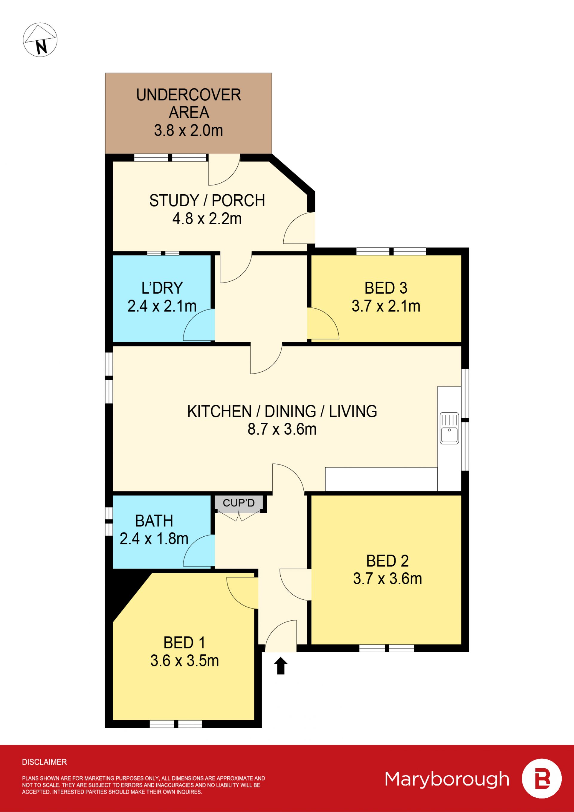 With heritage appeal and features this home boasts three bedrooms, two bedrooms with ceiling fans and the third bedroom or sleepout, suitable for a single or double bed.