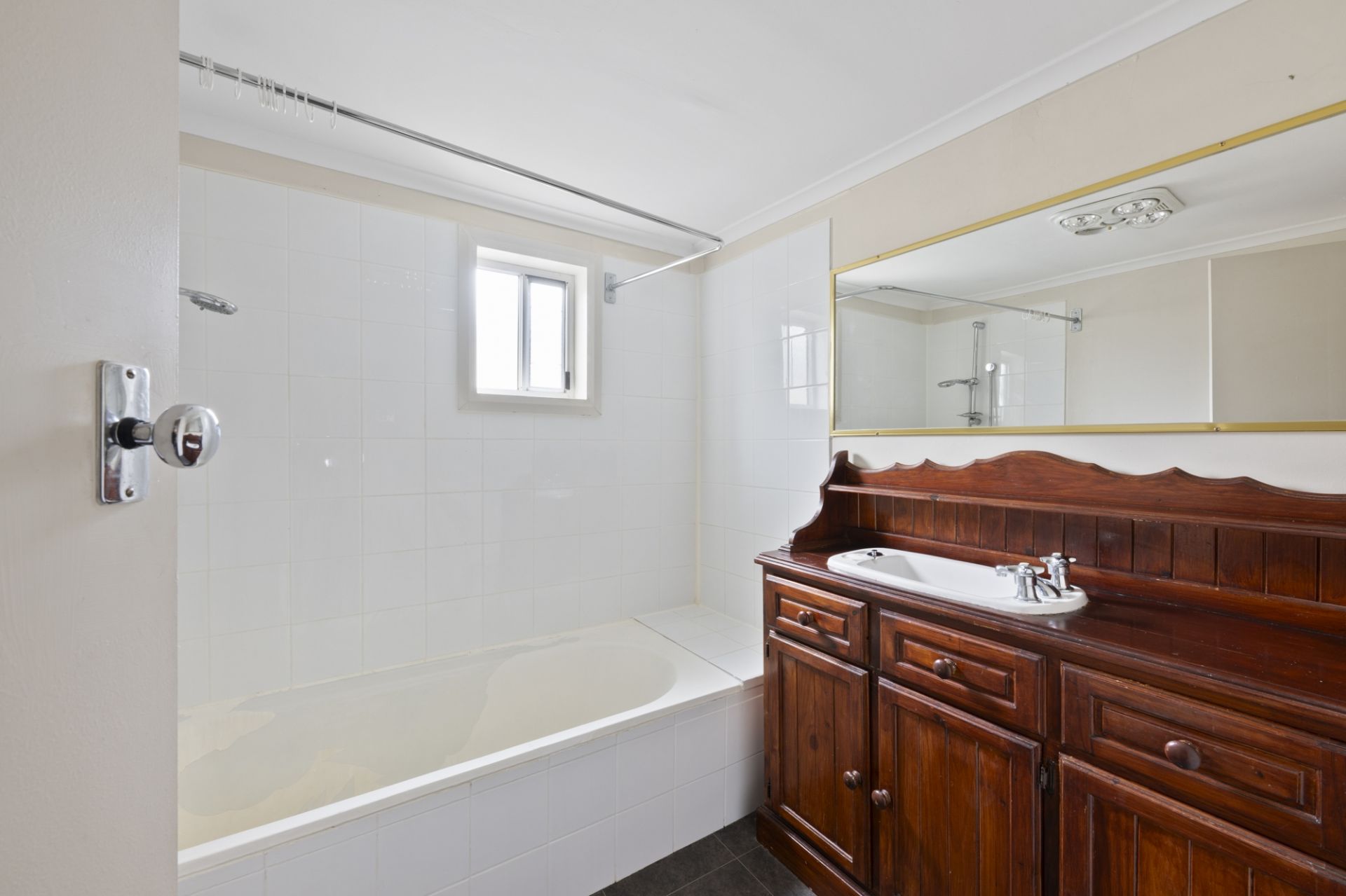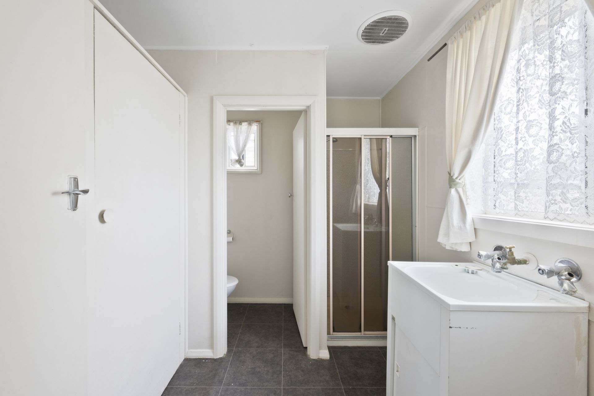 Three bedrooms (two with ceiling fans) are serviced by a neat central bathroom with shower over bath, large vanity and heat lamp, plus the bonus of a second shower in the laundry.