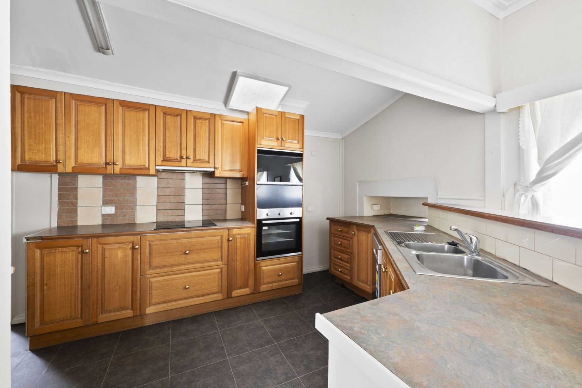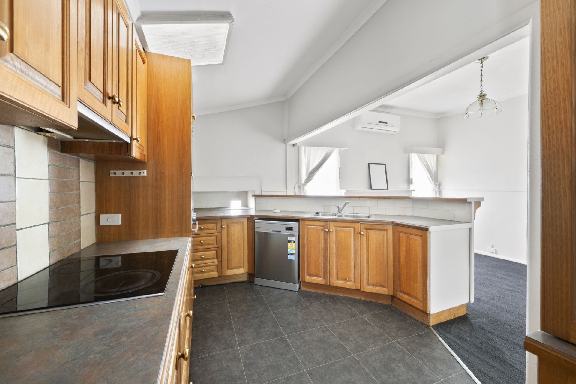 The open-plan living, dining and kitchen area is light-filled and comfortable, featuring a gas heater and split system. The kitchen provides excellent bench and cupboard space, along with an updated electric cooktop, electric oven and dishwasher.