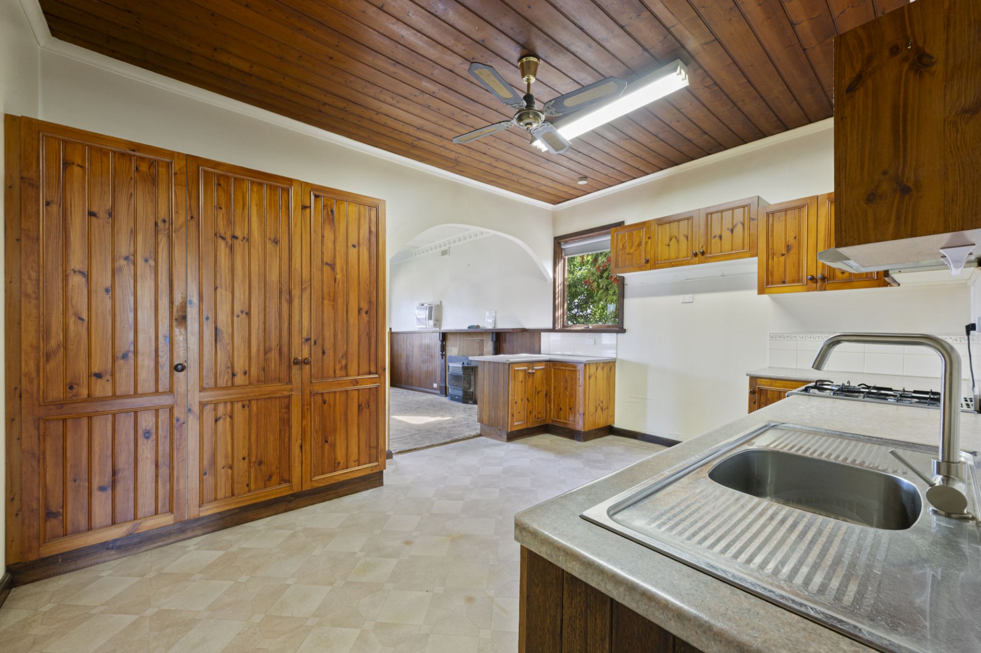 Warm and inviting throughout, the home features an open-plan kitchen, dining, and living zone equipped with modern appliances, including a gas cooker and the cosy ambience of a gas log fire. Air conditioning ensures year-round comfort, while the stylishly renovated bathroom includes a walk-in shower, vanity, and a separate toilet. The property is also fitted with solar power, delivering energy efficiency and reduced ongoing costs. Please note: the home will require re-stumping, presenting an opportunity for buyers to further enhance and value-add.