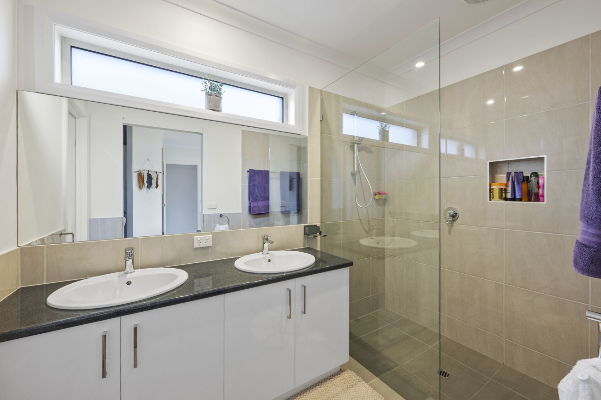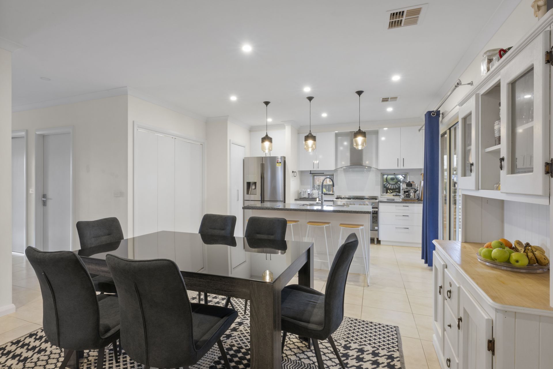 The spacious laundry offers excellent storage with both overhead and under-bench cabinetry. Additional features include solar feeding back to the grid, a double remote garage with direct access to the home, ducted heating and cooling, double glazing, water tanks, established gardens, and a grassed area ideal for children, pets or play equipment.