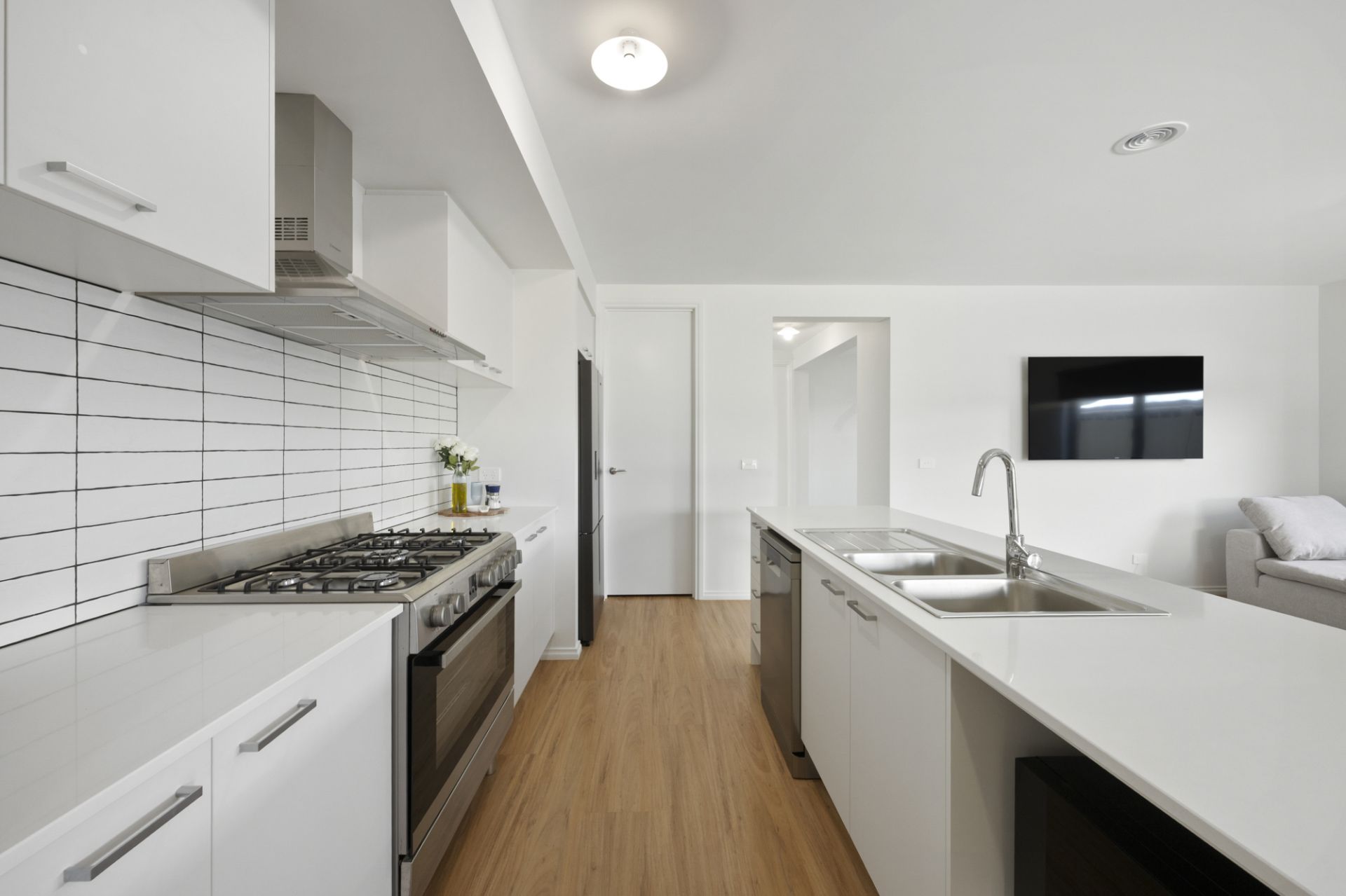 At the heart of the home is a spacious open-plan kitchen, dining and lounge zone designed for everyday comfort and effortless entertaining. The kitchen is superbly appointed with a 900mm stainless-steel freestanding oven, dishwasher, walk-in pantry, and generous bench space. A second living area provides flexibility for families, guests, or a home office setup.
