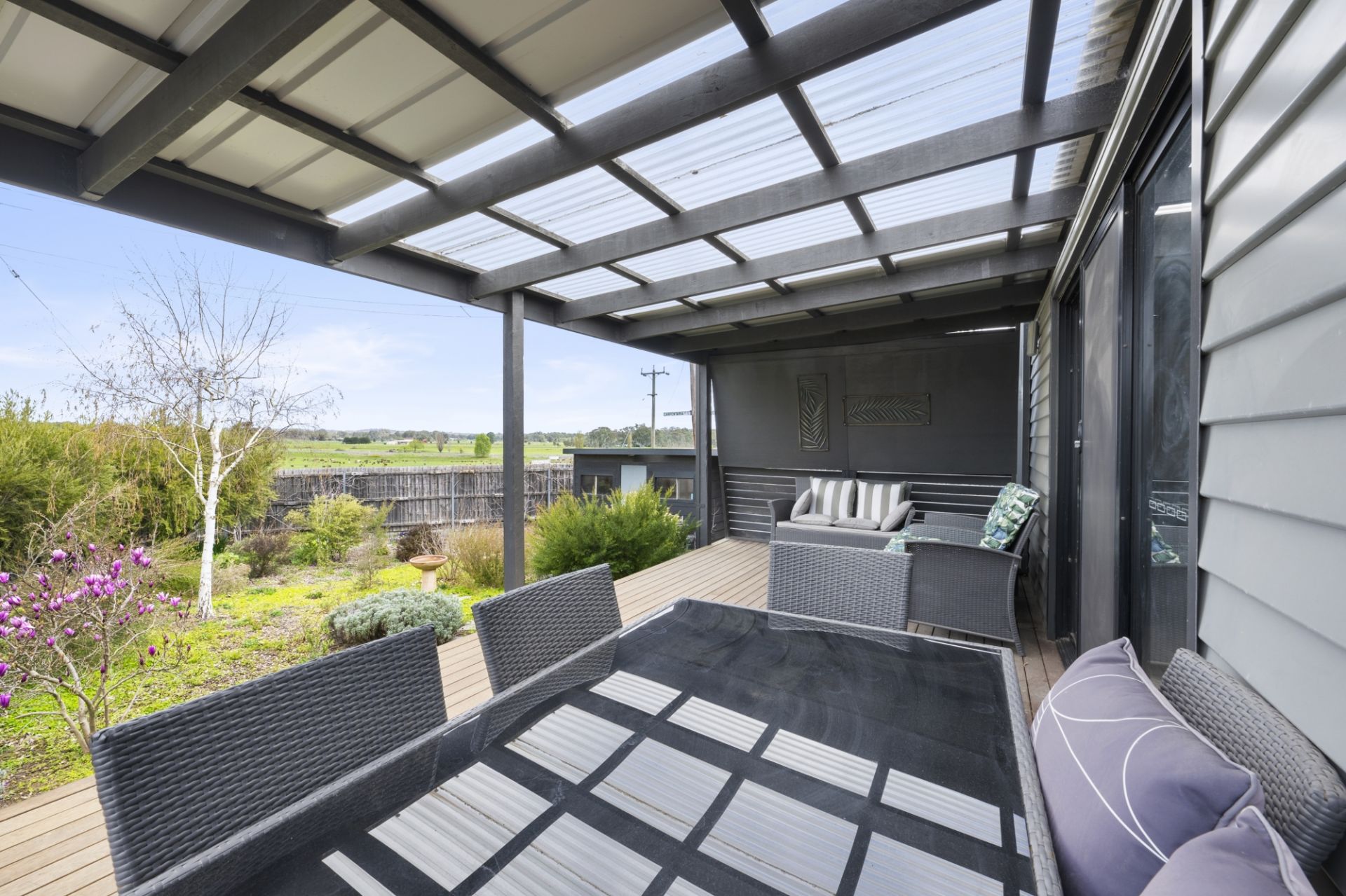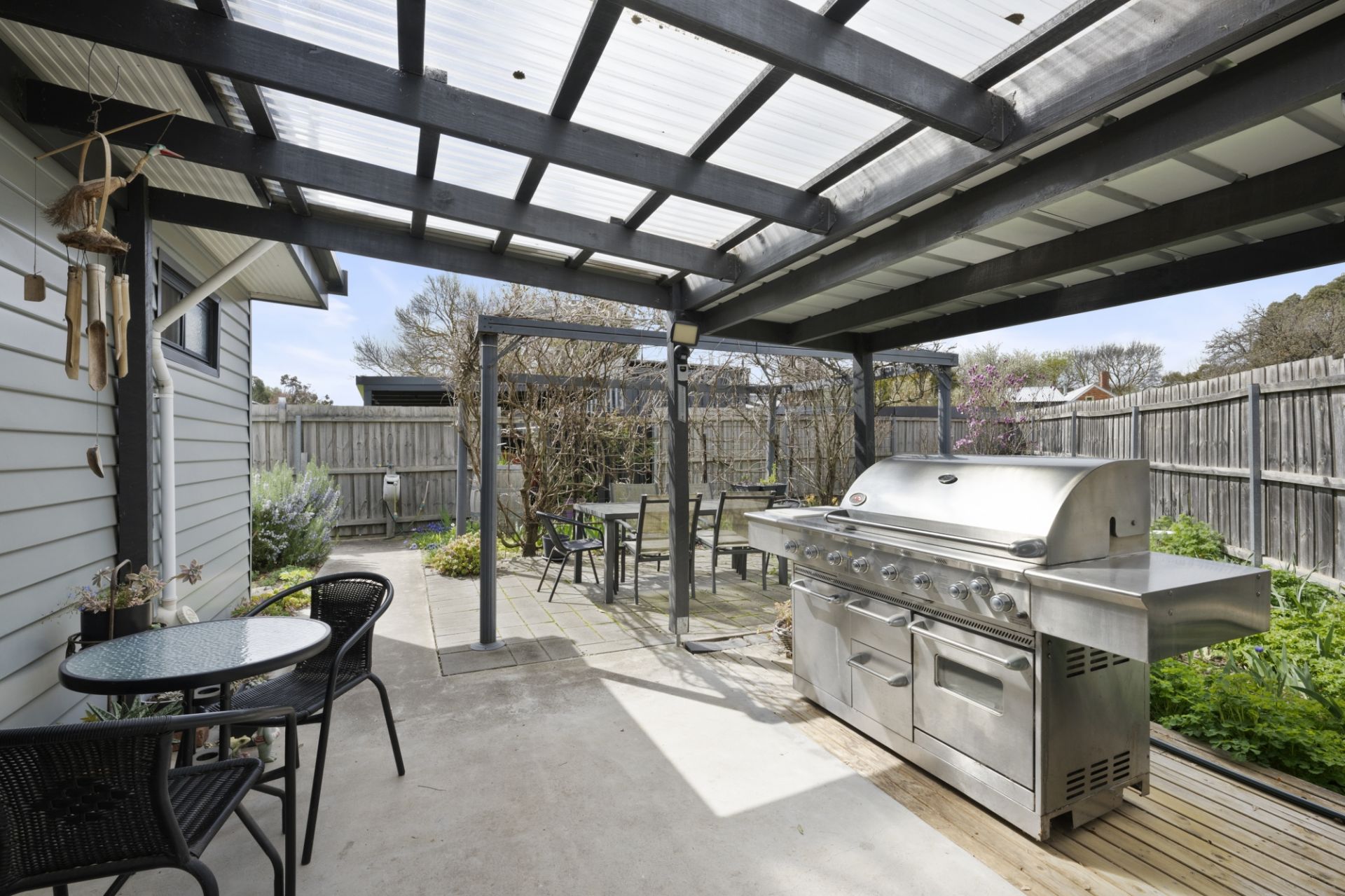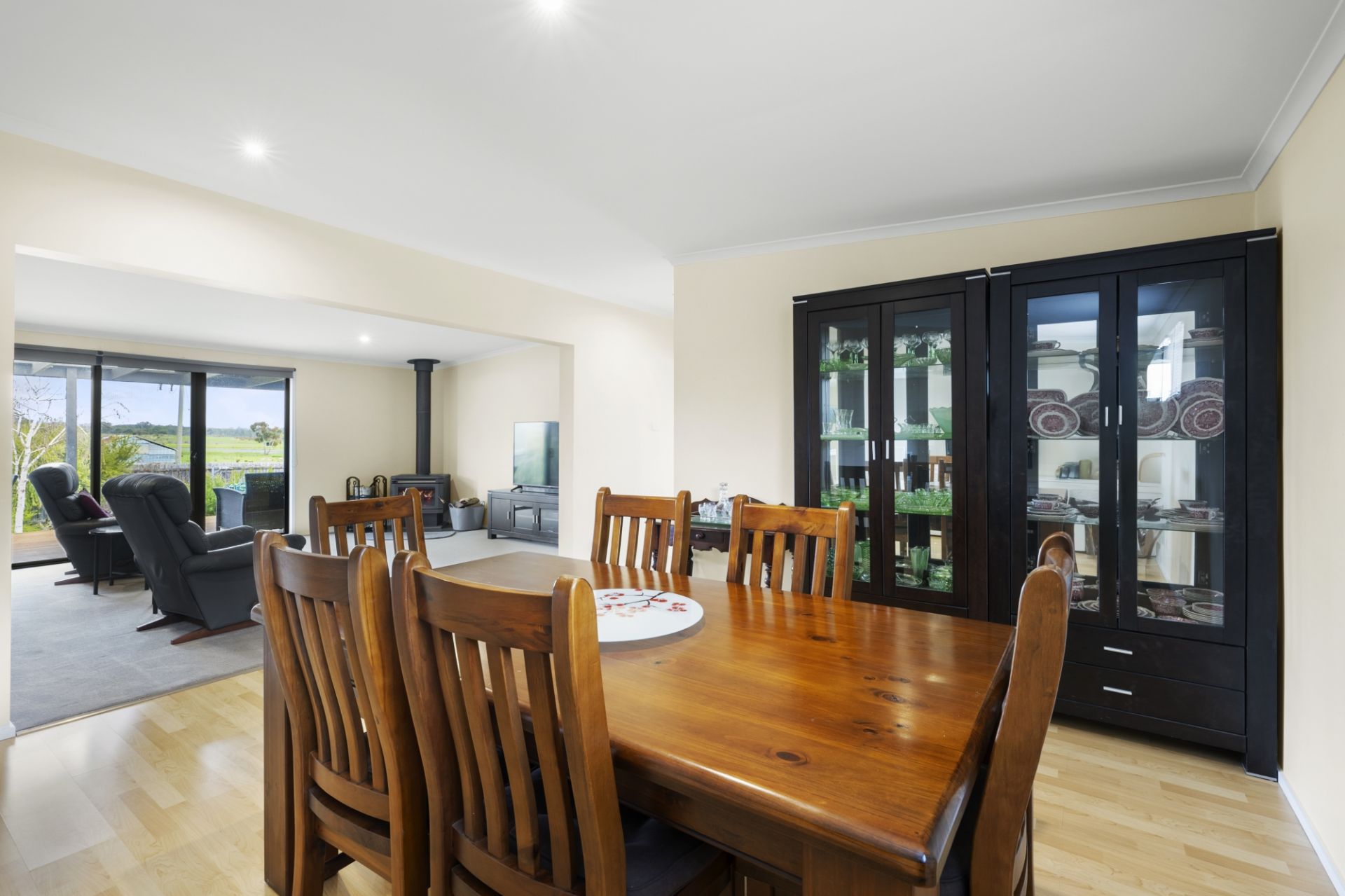The heart of the home is a light-filled open-plan living and dining area, complete with a cosy wood fire and a split system for year-round comfort. Large glass sliding doors open out to a generous deck the ideal spot to relax with a cuppa or entertain friends while enjoying the views.