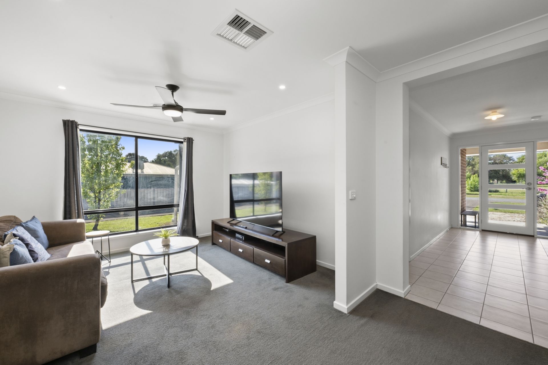 This 7-year-old Simmons-built brick home offers modern living with plenty of space inside and out. Designed for comfort, the home features four spacious bedrooms, each with built-in robes, with the master bedroom boasting a walk-in robe and a large ensuite complete with a double shower and vanity. The king-size bed fits comfortably in the master, and ceiling fans provide extra comfort.