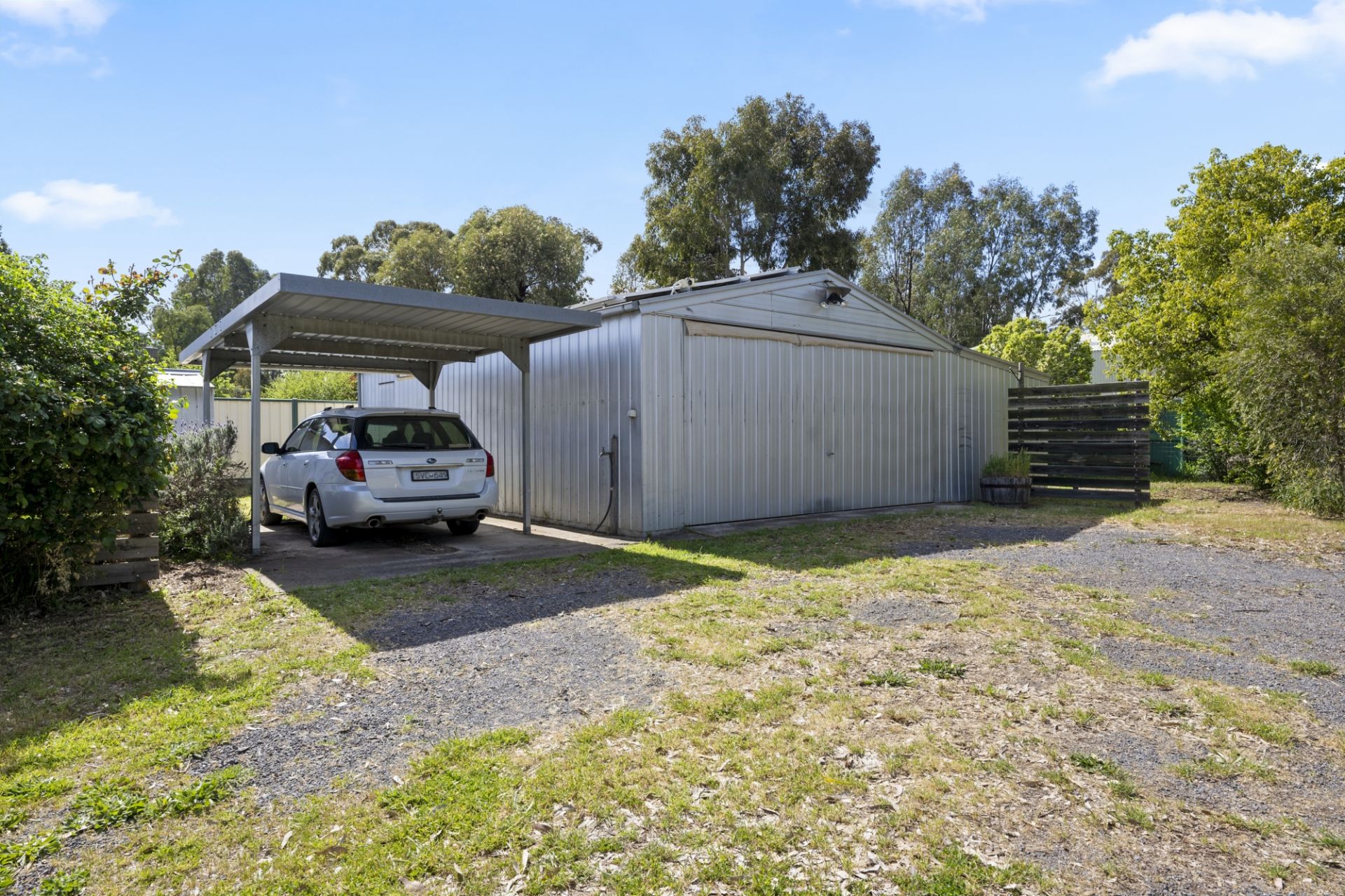 There's plenty of space for parking, including a four-car garage, workshop area, single carport, and garden shed. Established plants and trees with scope for you to still design your own landscape.