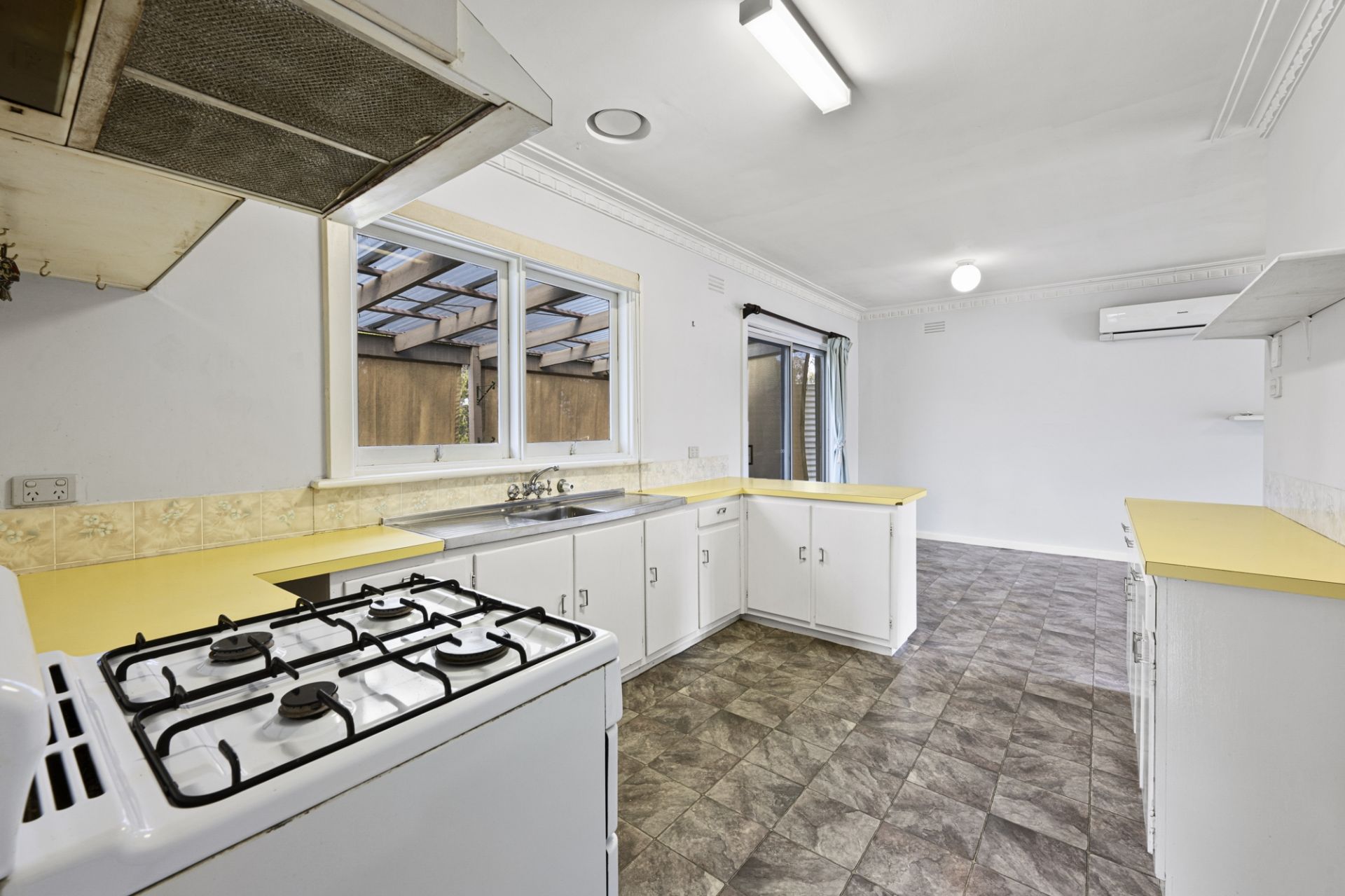 The family weatherboard home features three bedrooms, with the main offering plenty of natural light and its own air-conditioner. Bedroom three also includes a built-in robe. The bathroom is complete with a separate shower, bath, vanity, and IXL.